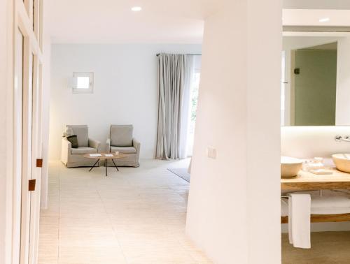 Surrounded by gardens, each room features traditional Menorcan décor with whitewashed walls and exposed beams ceilings.