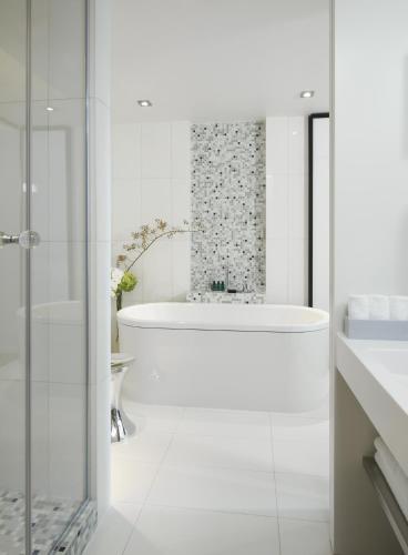 The suites are enhanced with a flat-screen TV and a spacious bathroom decorated with Putman mosaic tiles. The suites offer both a large walk-in shower and a freestanding bath.