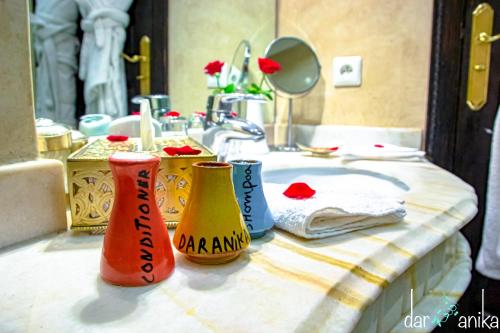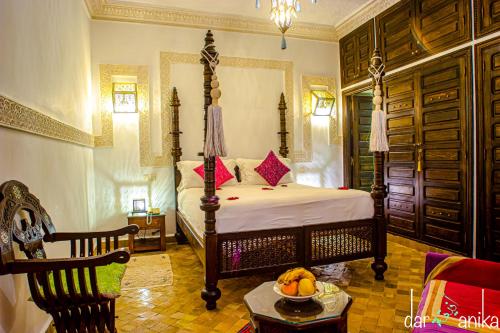 Las habitaciones del Riad Dar Anika presentan decoración marroquí tradicional e incluyen conexión WiFi gratuita y paquete de bienvenida con agua mineral y repostería del país.