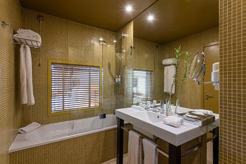 Las habitaciones del Pestana Palácio do Freixo son amplias y disponen de aire acondicionado y zona de estar independiente. El baño incluye artículos de aseo de lujo y secador de pelo. Algunas habitaciones ofrecen vistas al río Duero.