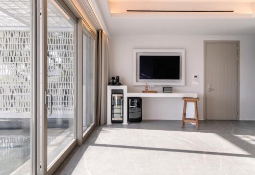 Le musée archéologique de Mýkonos et le vieux port figurent parmi les lieux d’intérêt prisés dans les environs. Vous trouverez l’aéroport de l’île de Mýkonos, le plus proche, à 2 km et le restaurant Nammos à 3,2 km.