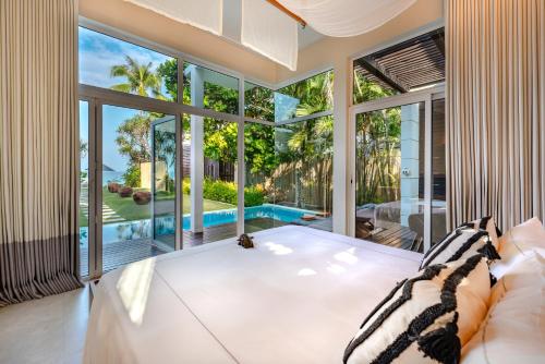 Villas are decorated in a contemporary style and provides a view of the ocean. While select villas include a private infinity-edge pool, most provide direct access to a common pool. They are all equipped with a sun deck and flat-screen television.