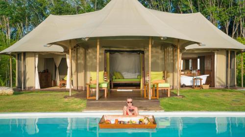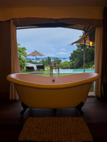 9 Hornbills Tented Camp heeft gratis fietsen, een buitenzwembad, een fitnesscentrum en een tuin in Ko Yao Noi. Het resort met 4 sterren biedt een privéstrand en heeft kamers met airconditioning, gratis WiFi, een eigen badkamer. Het resort heeft een terras en uitzicht op de zee, en je kunt genieten van een maaltijd in het restaurant of een drankje bij de bar.