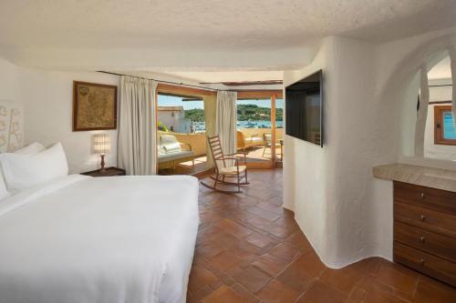 The Cala Di Volpe's rooms are large and air-conditioned. Each one comes with a seating area with 42-inch (106 cm) flat-screen TV with satellite channels and DVD player. Rooms overlook Cala di Volpe Bay and the hotel gardens from the private balcony.